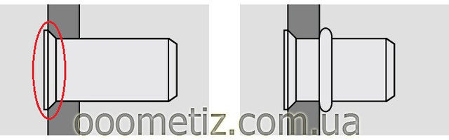 - Введіть заклепку в отвір і встановіть її. В процесі установки різьбовий заклепки формується внутрішній опорний буртик.